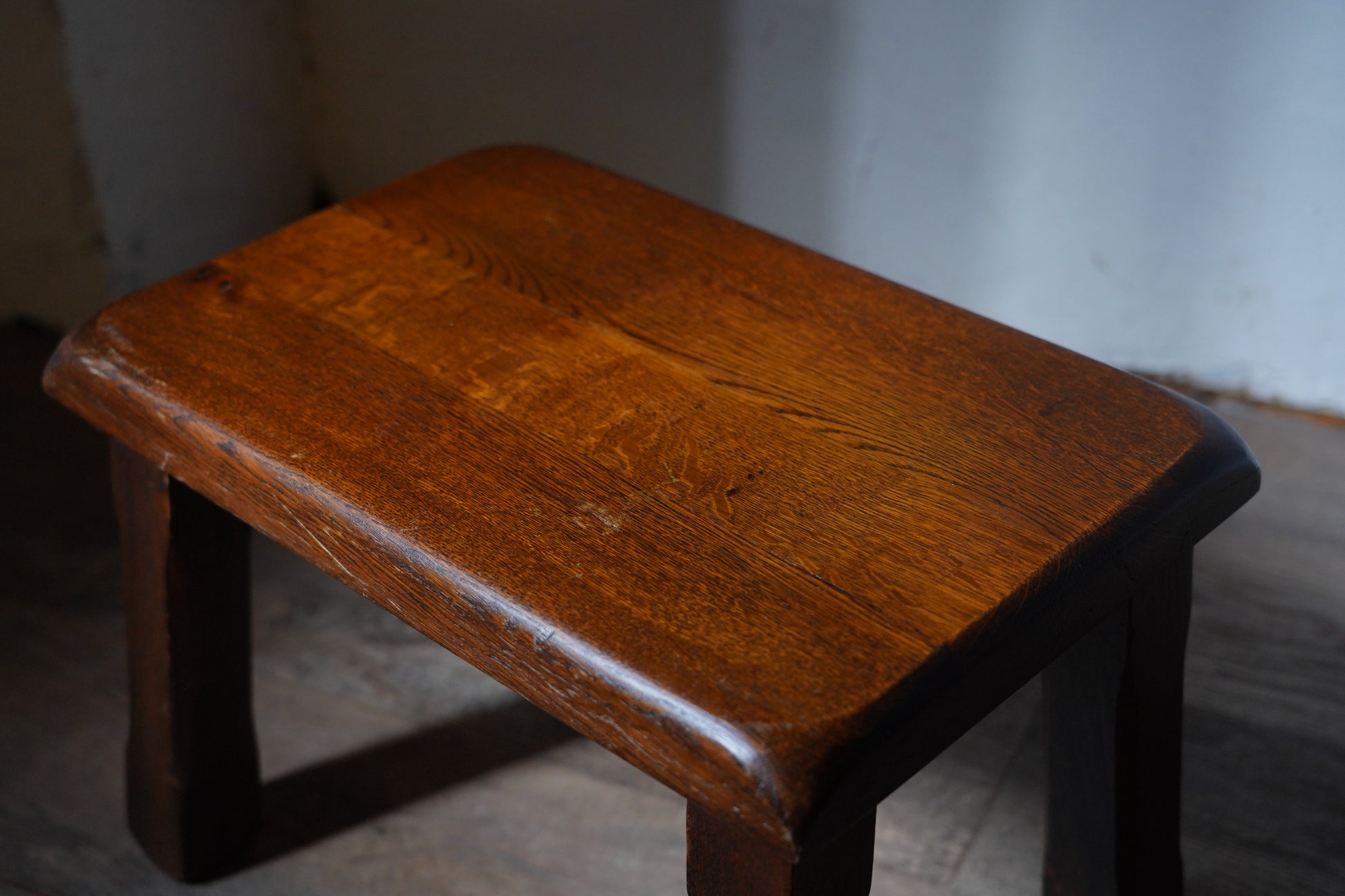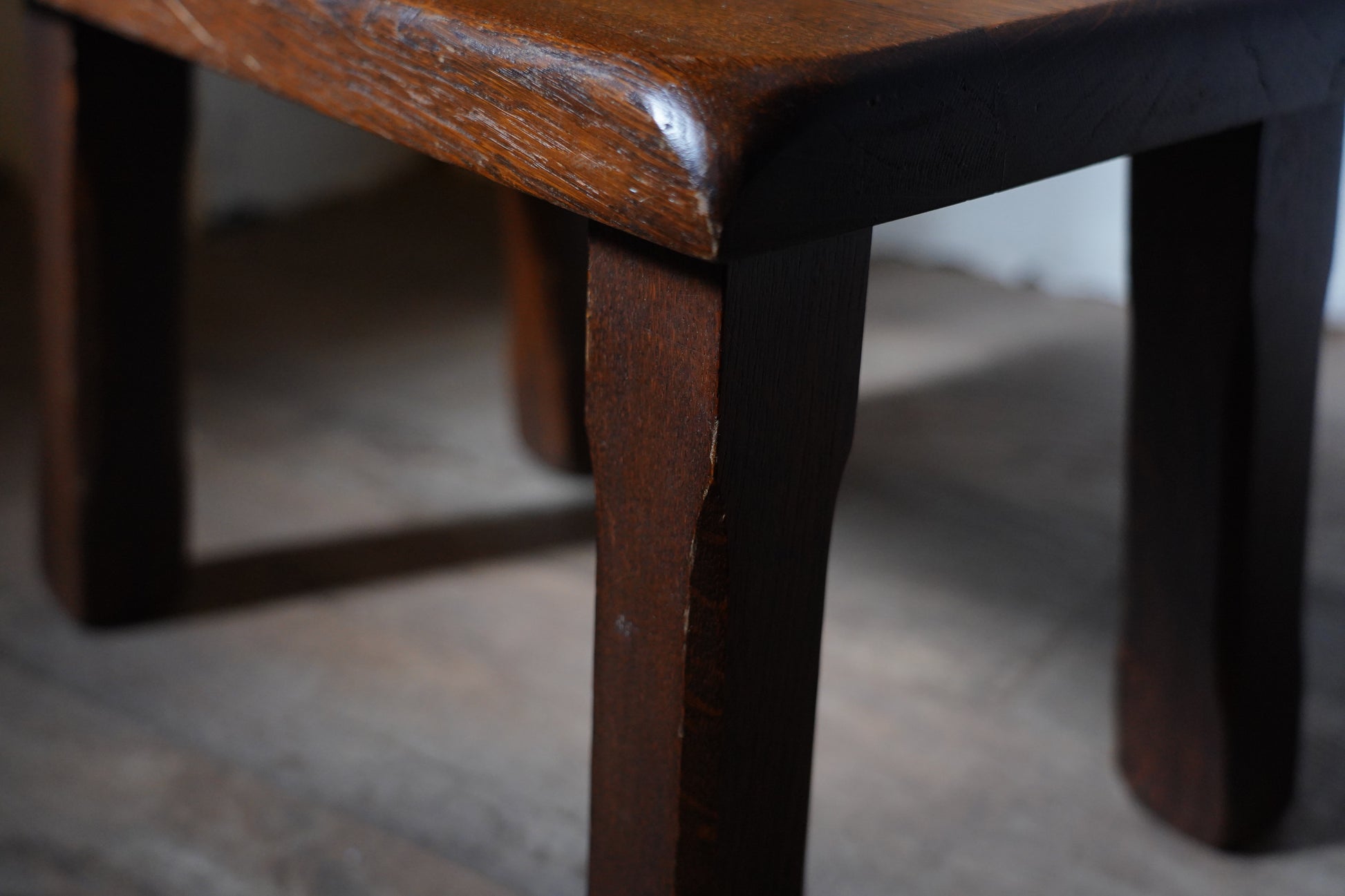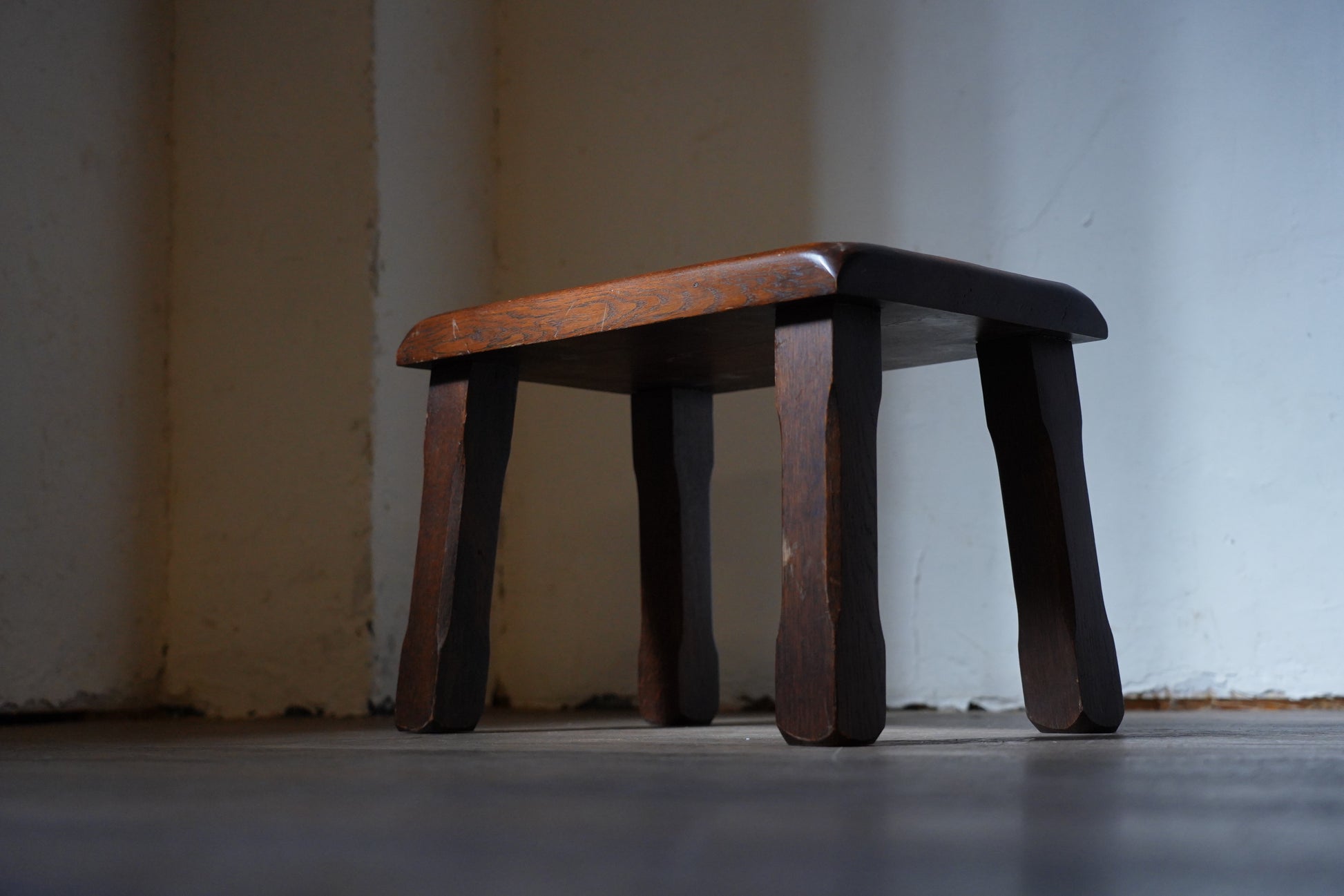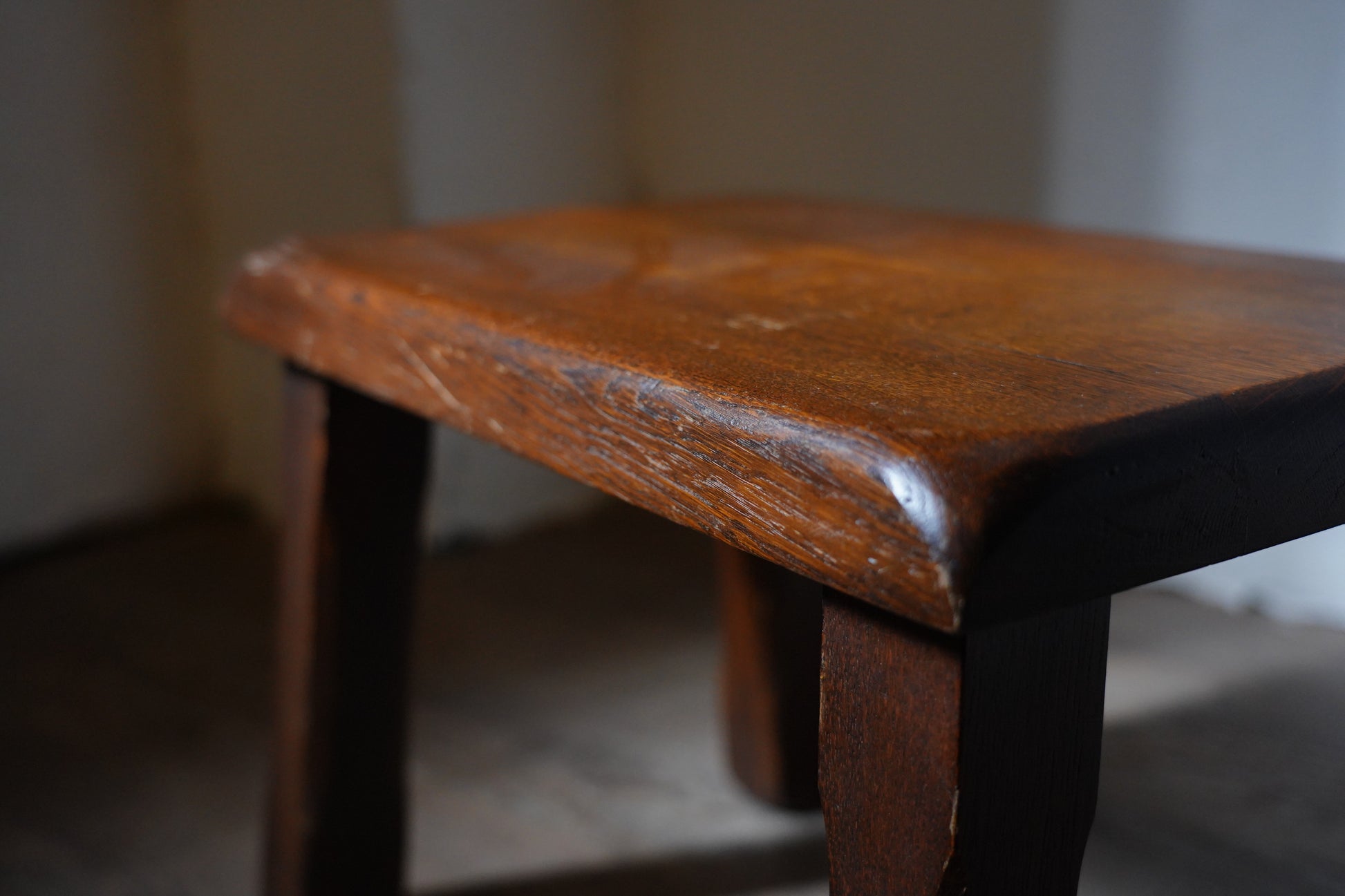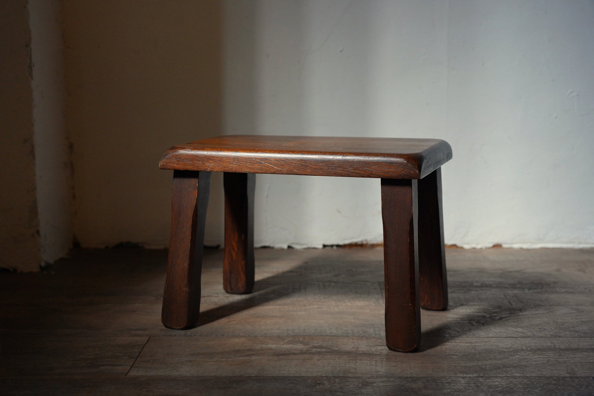 ダークなブラウンカラーの塗りがクラシカルで、サイズがコンパクトなのでミニテーブルにもスツールにもなるお品です。