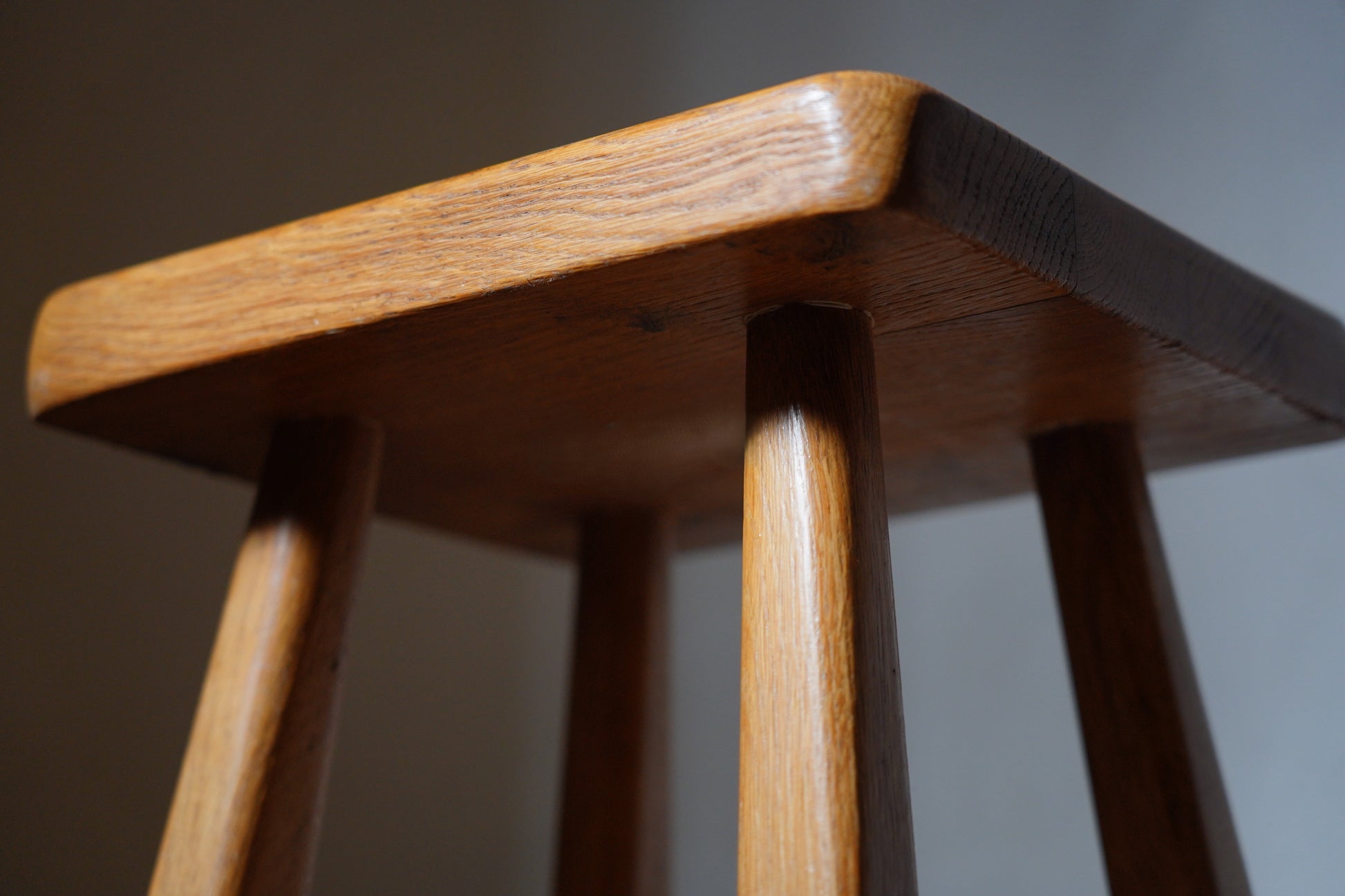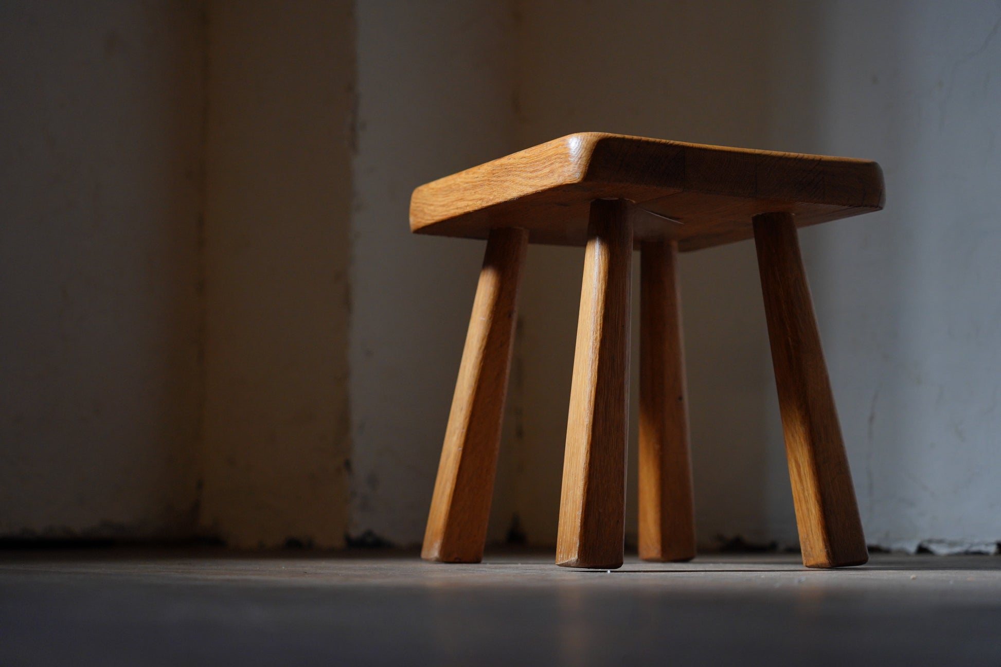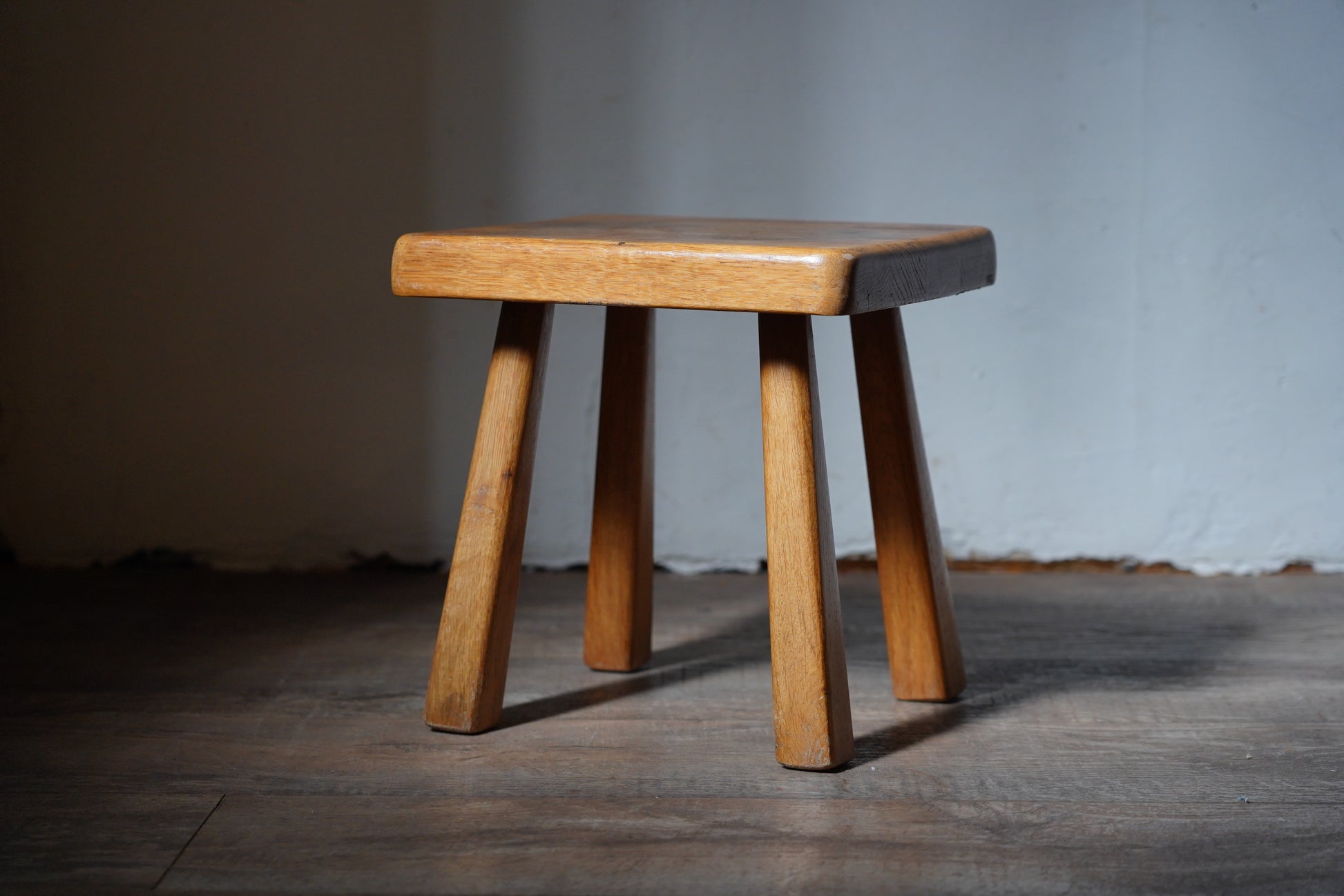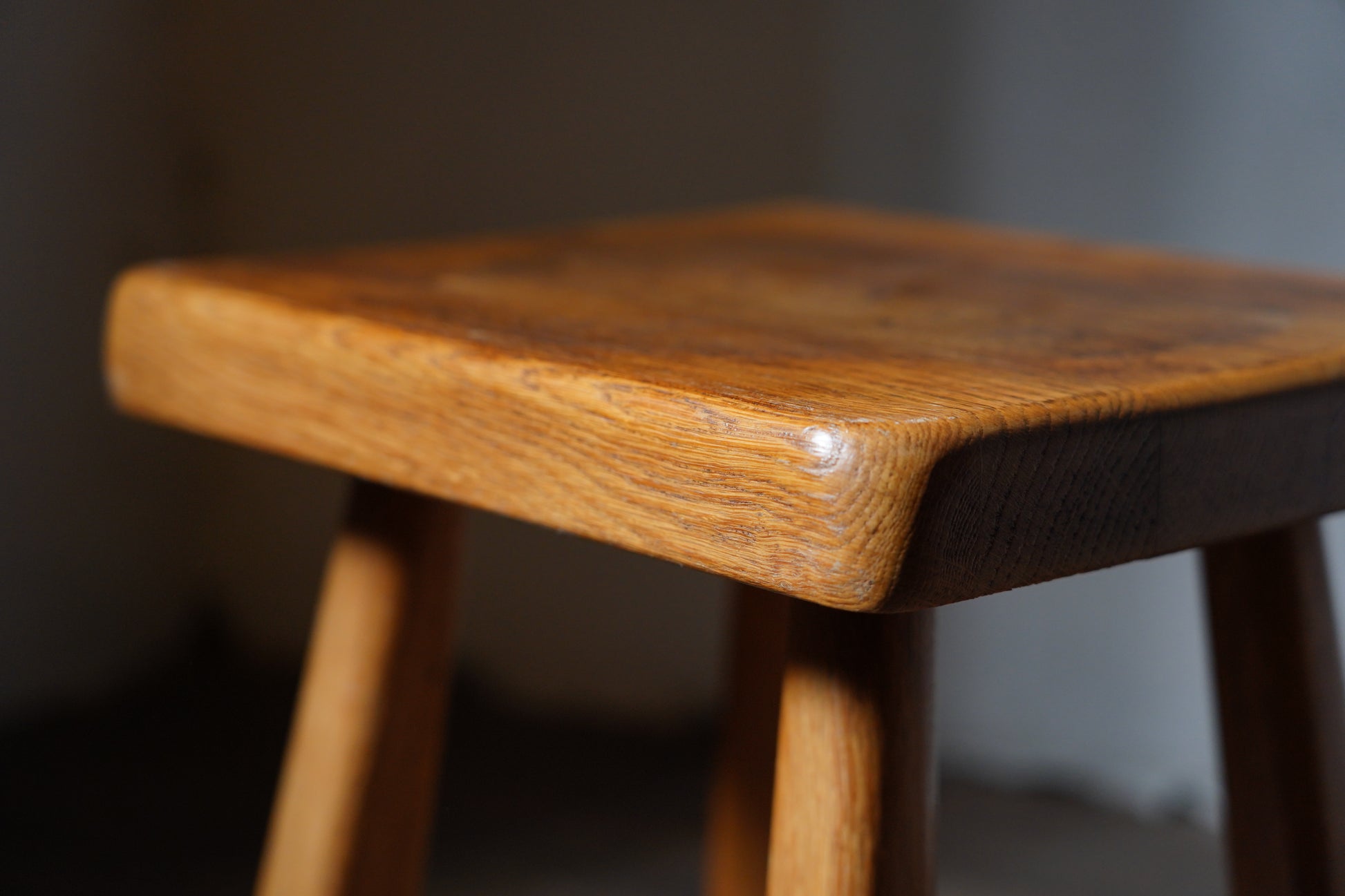 厚みのある1枚板の座面と、ナチュラルなカラーや末広がりな足元が朗らかな印象です。