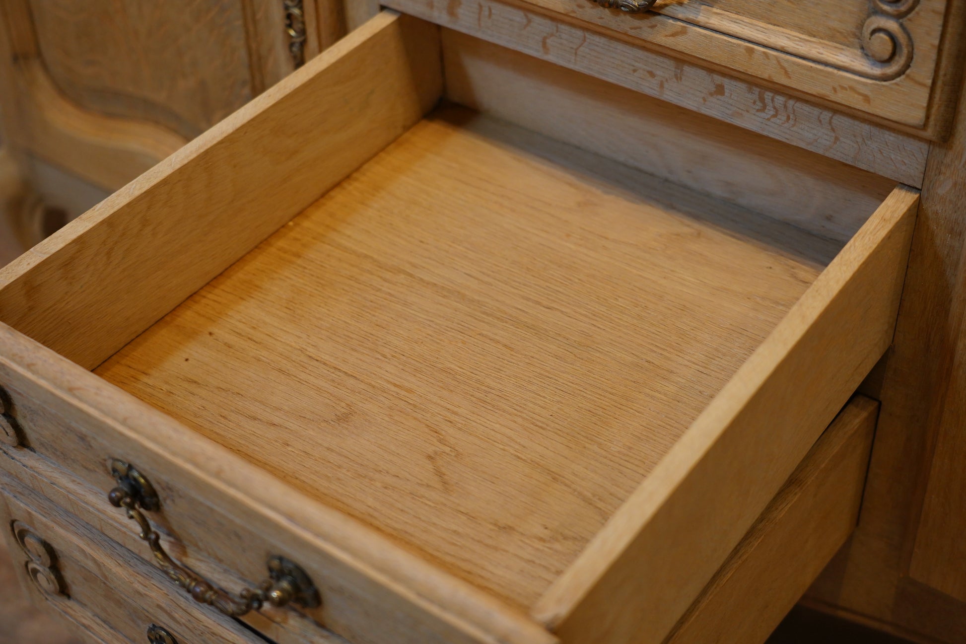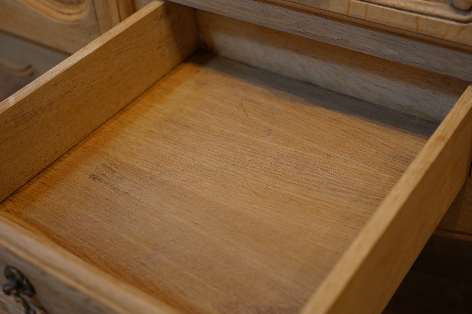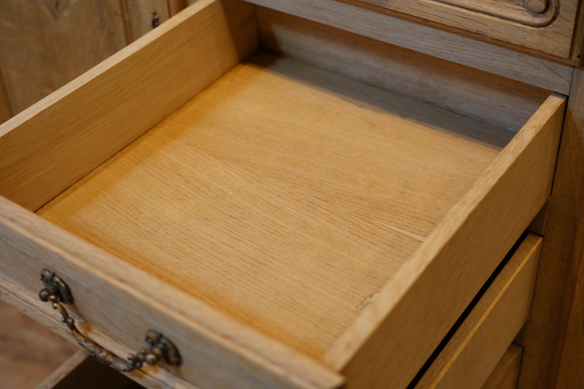 丁寧に剥離された小さな引き出しがありがたいチェストです。