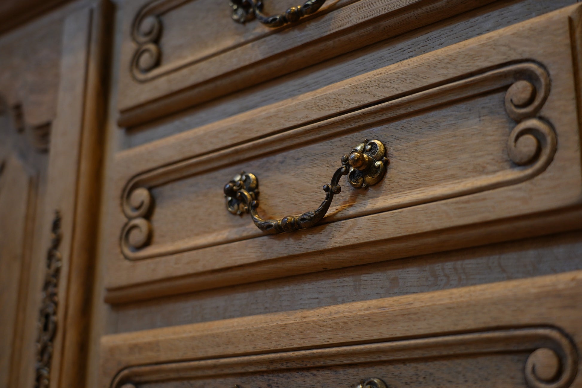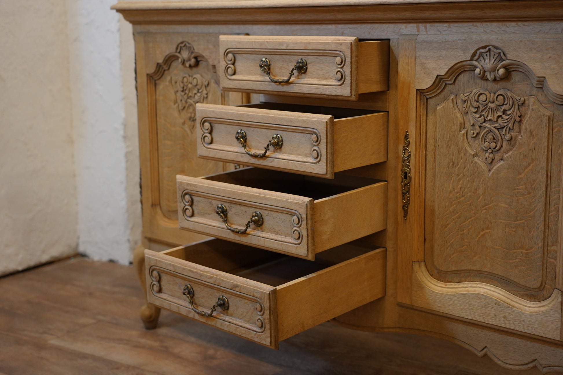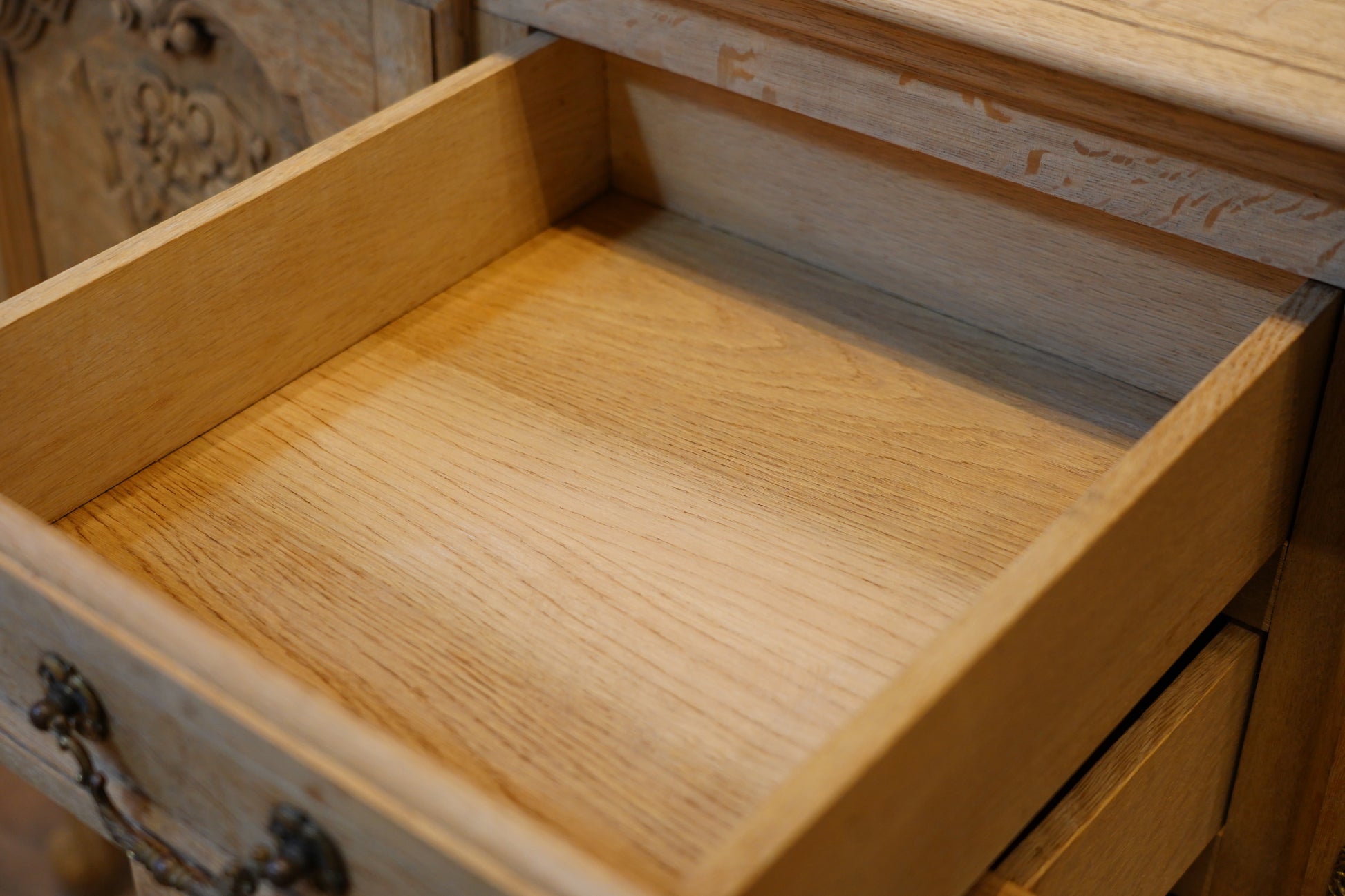 丁寧に剥離された小さな引き出しがありがたいチェストです。