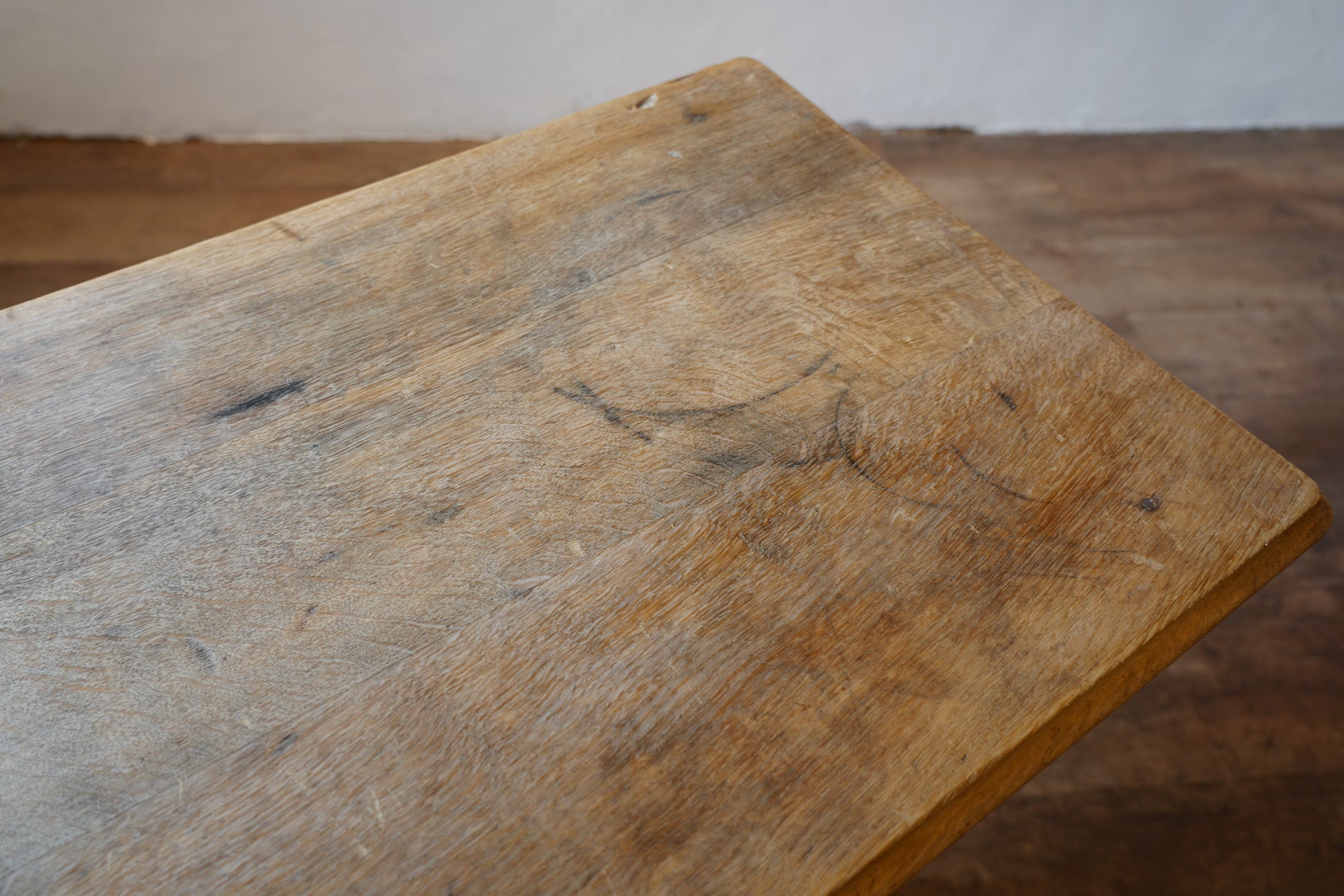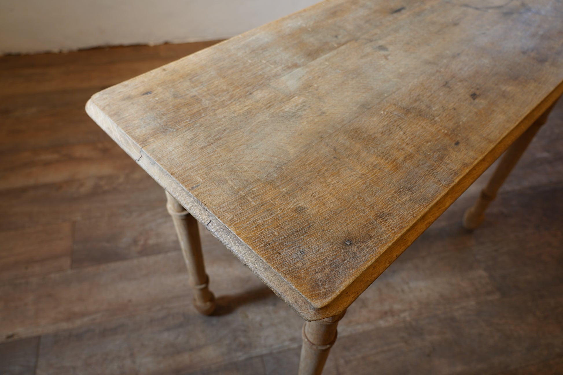 天板は使い込まれた風合いが良く、足先はどんぐりのようなかたちで愛らしいテーブルです。