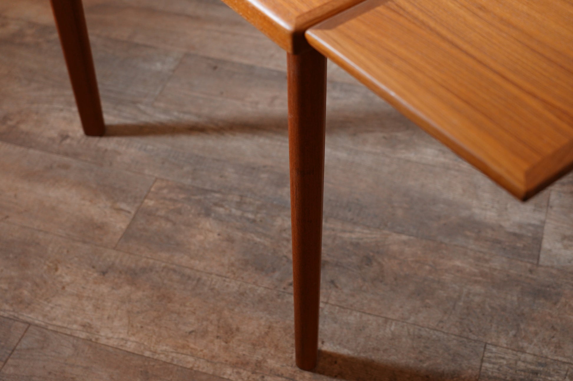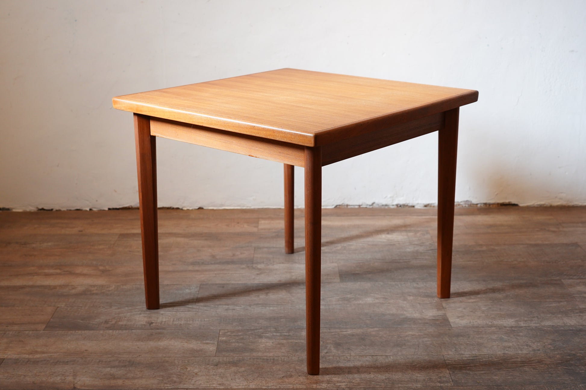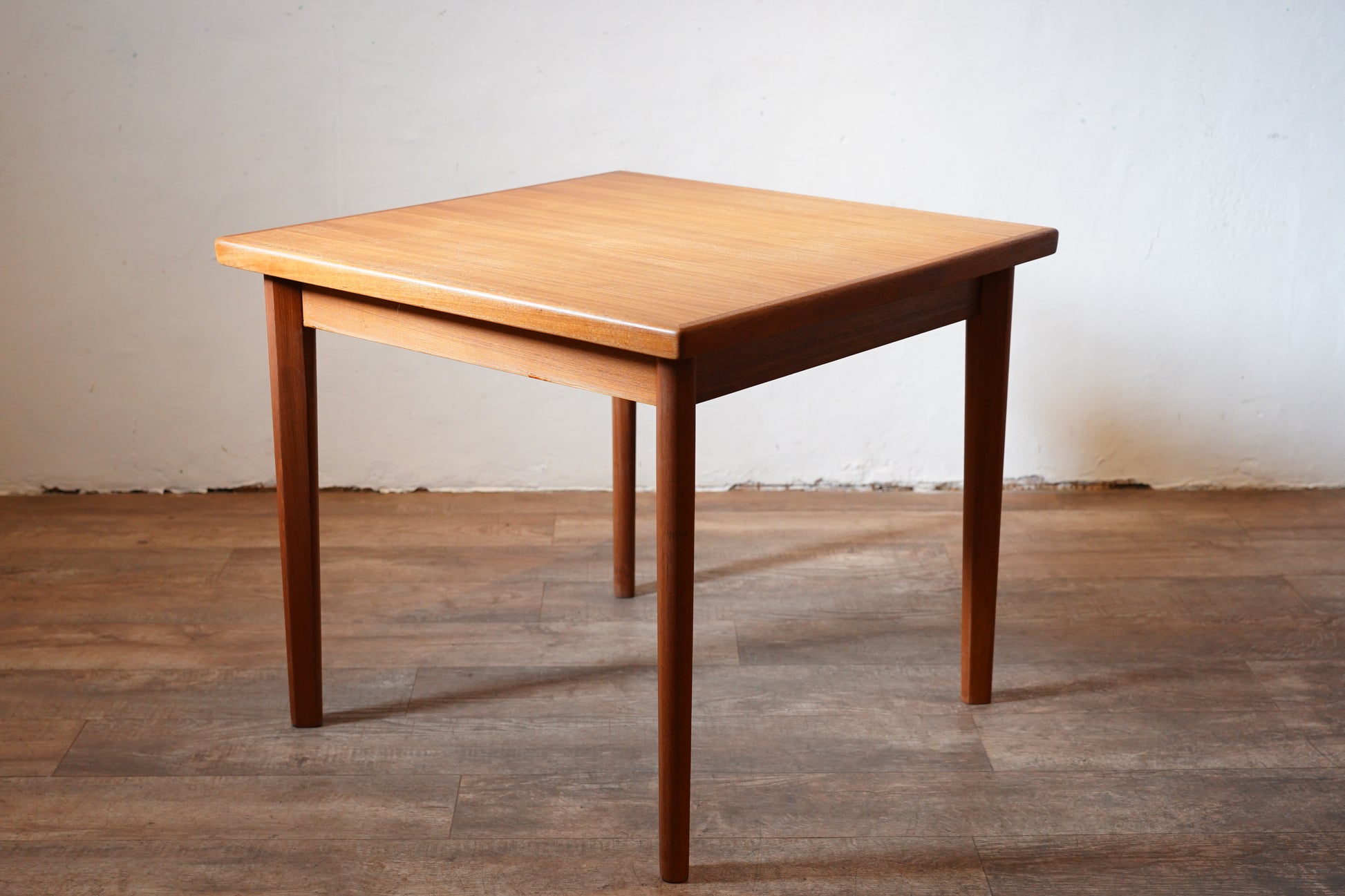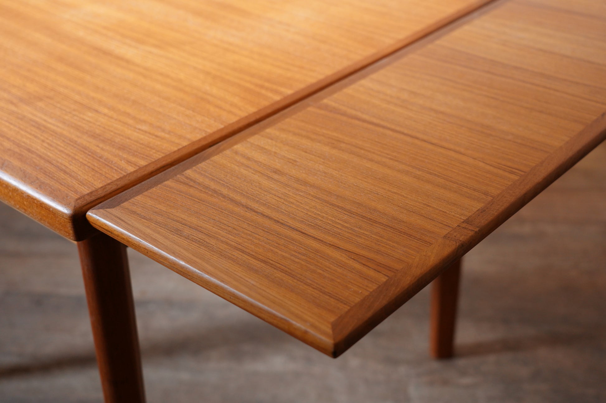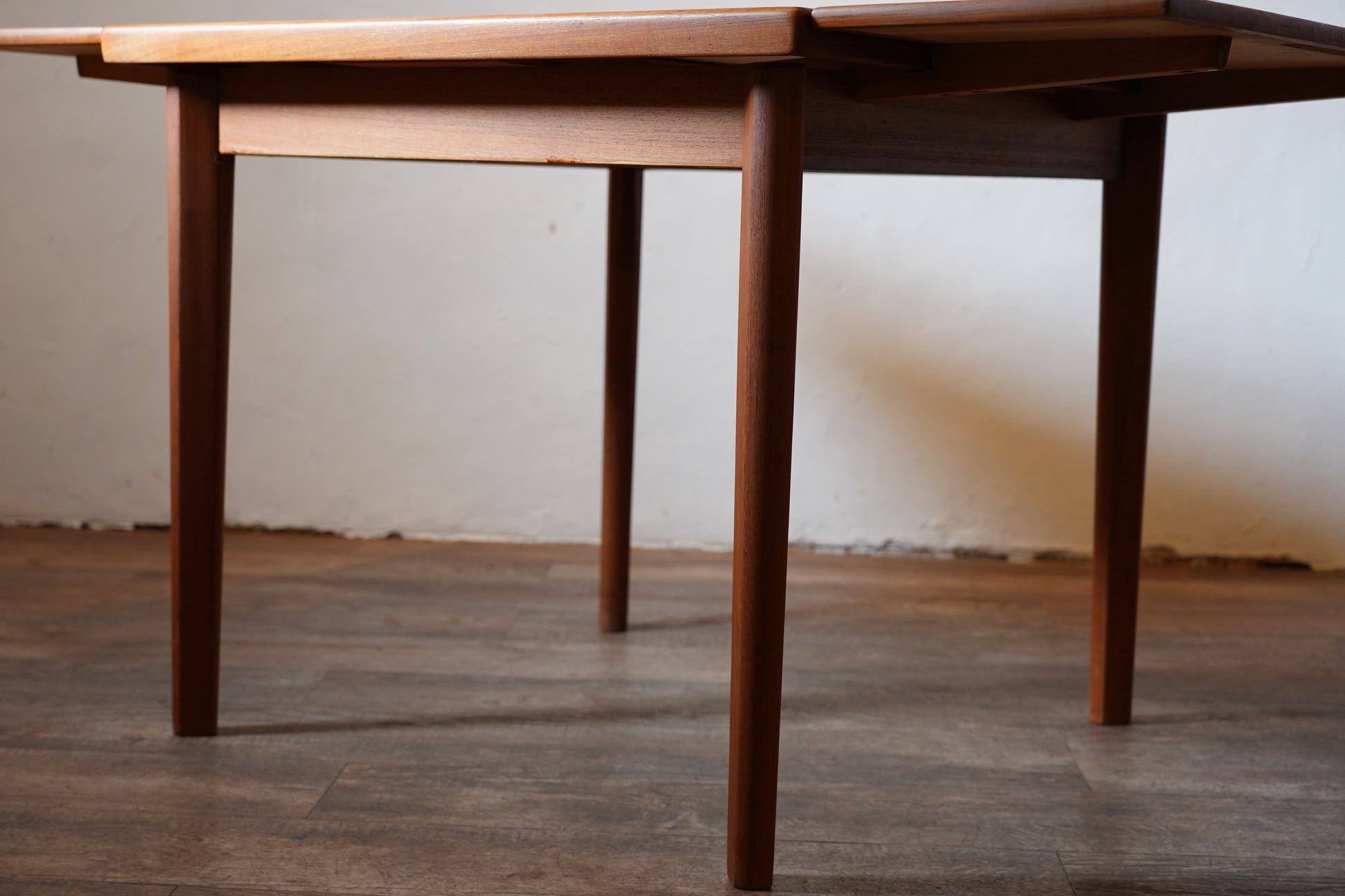 とろみのあるチークの木肌が美しく、両サイドから内部に収納された板を広げて、天板のサイズを大きくすることが出来るドローリーフテーブルです。