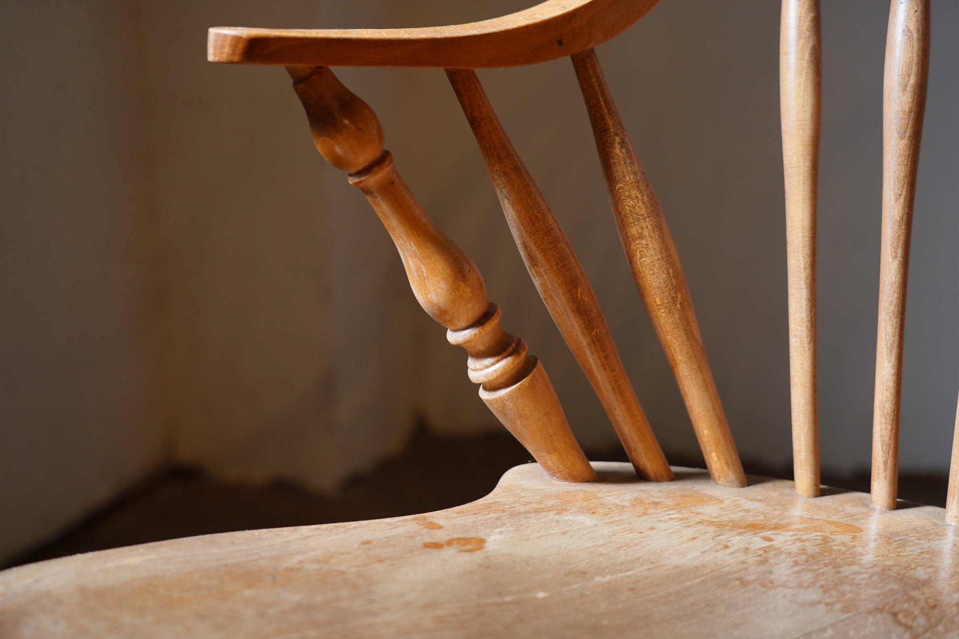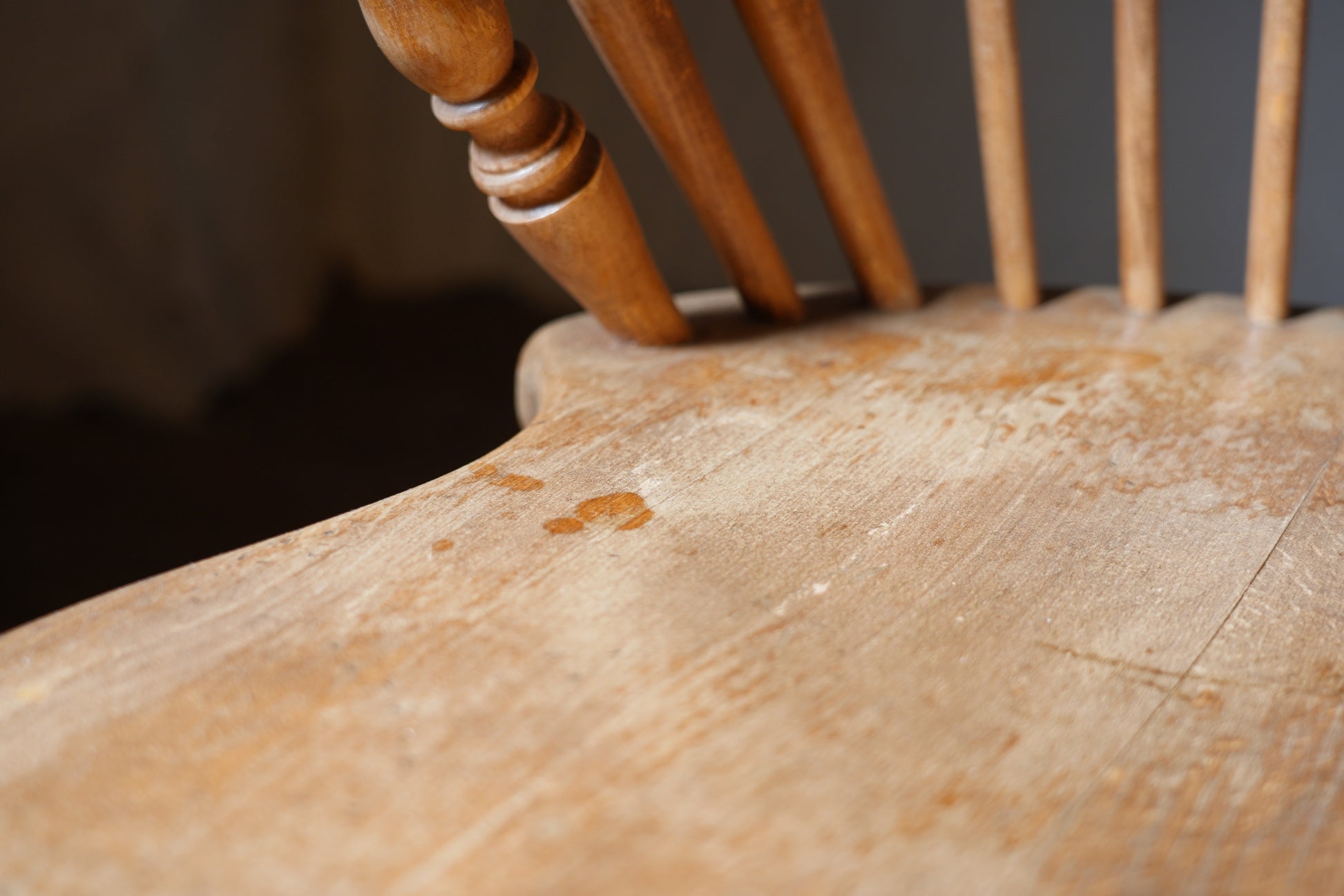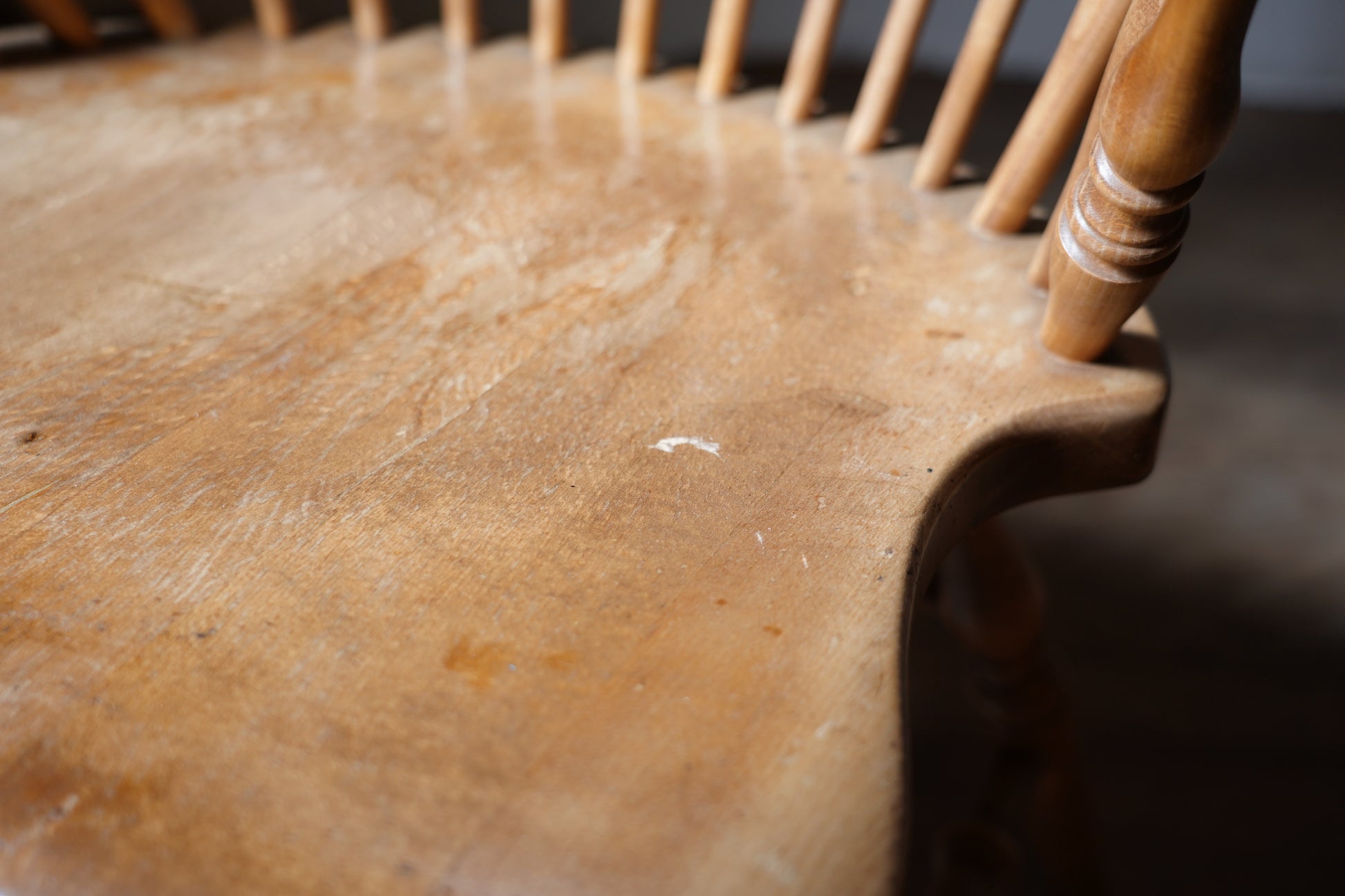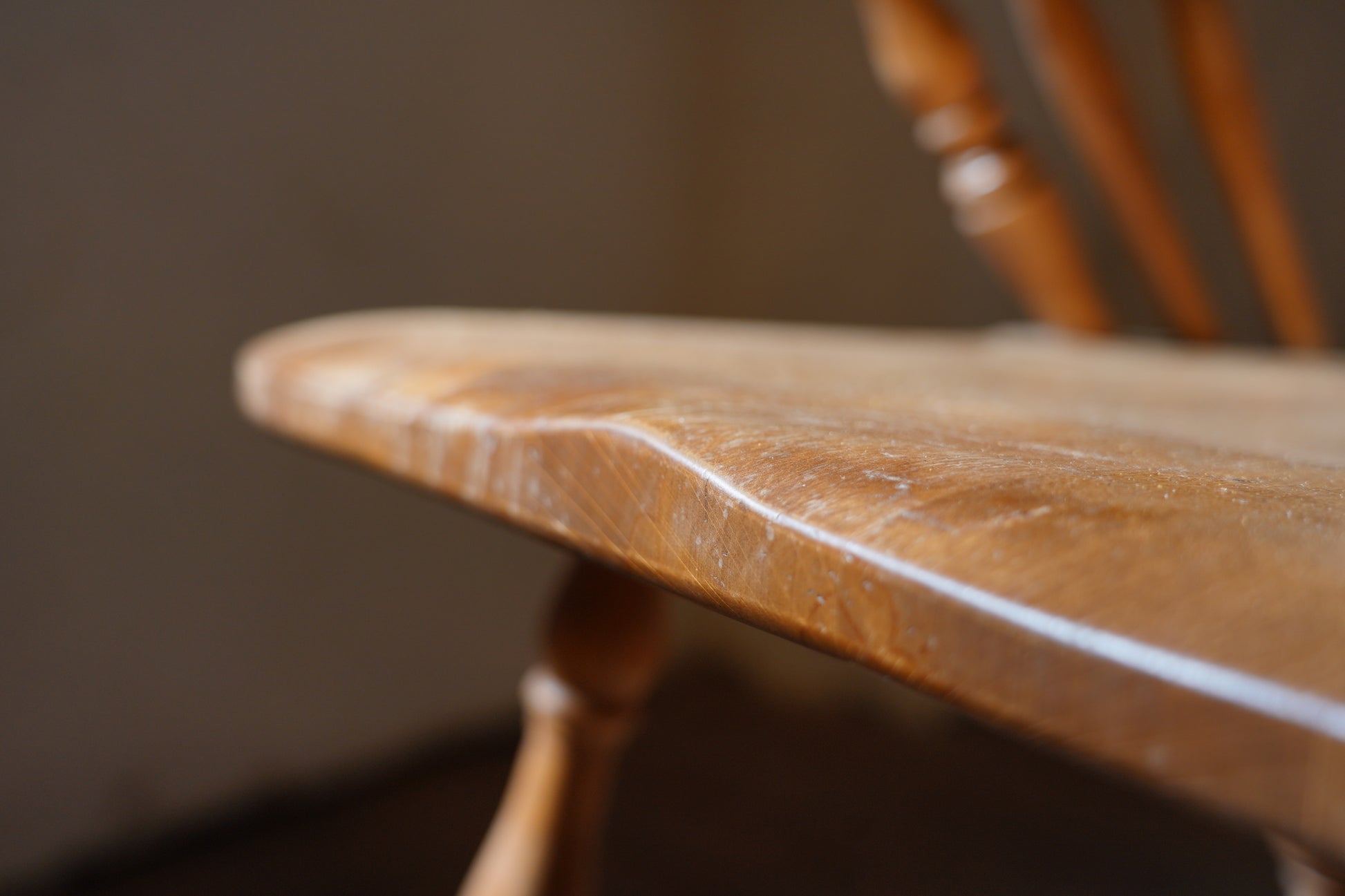 背もたれ上部には塗装が擦れて白くなった箇所がありますが、再塗装はせずあえてオリジナルのままにしてあります。