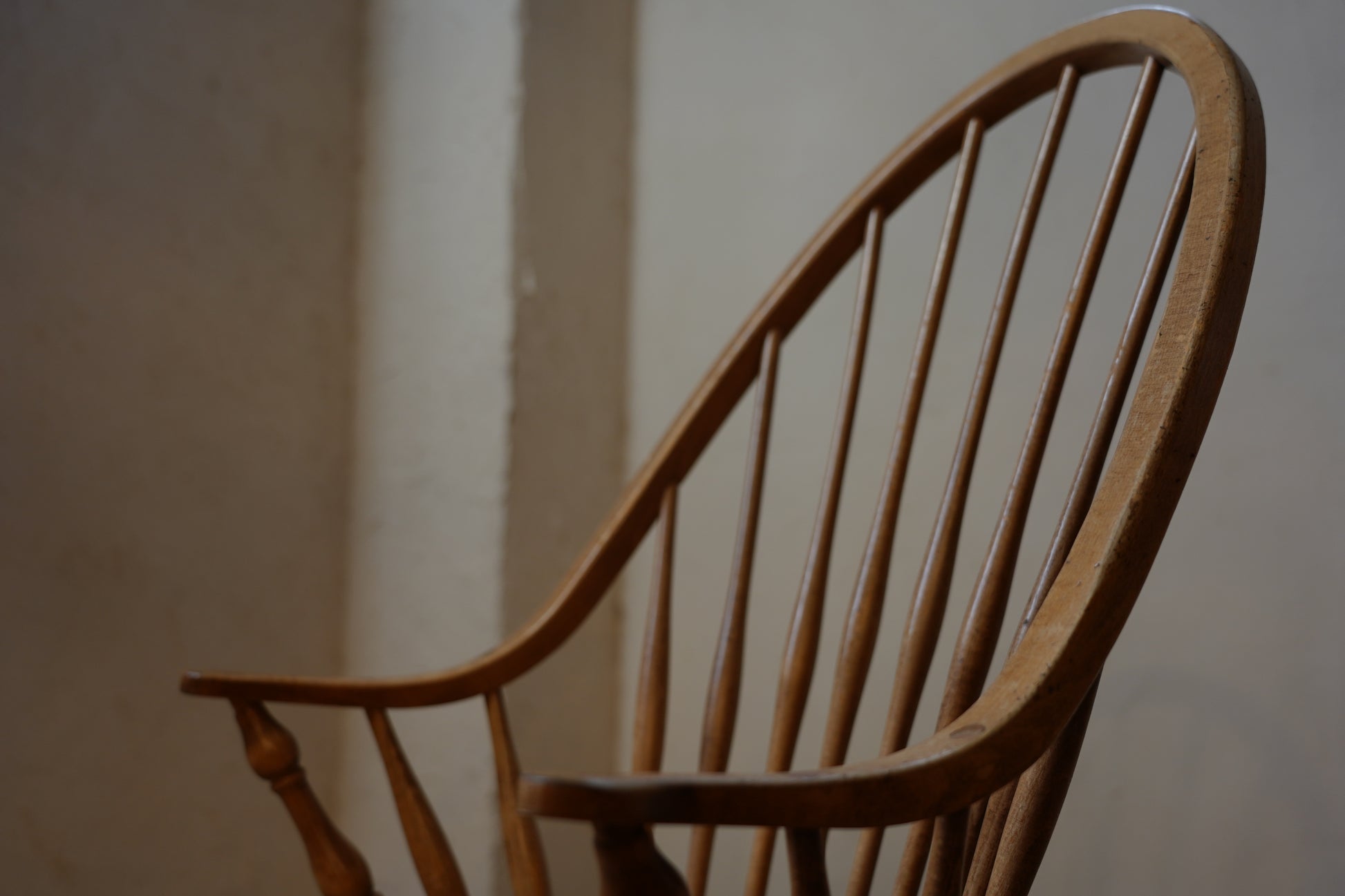 背もたれ上部には塗装が擦れて白くなった箇所がありますが、再塗装はせずあえてオリジナルのままにしてあります。