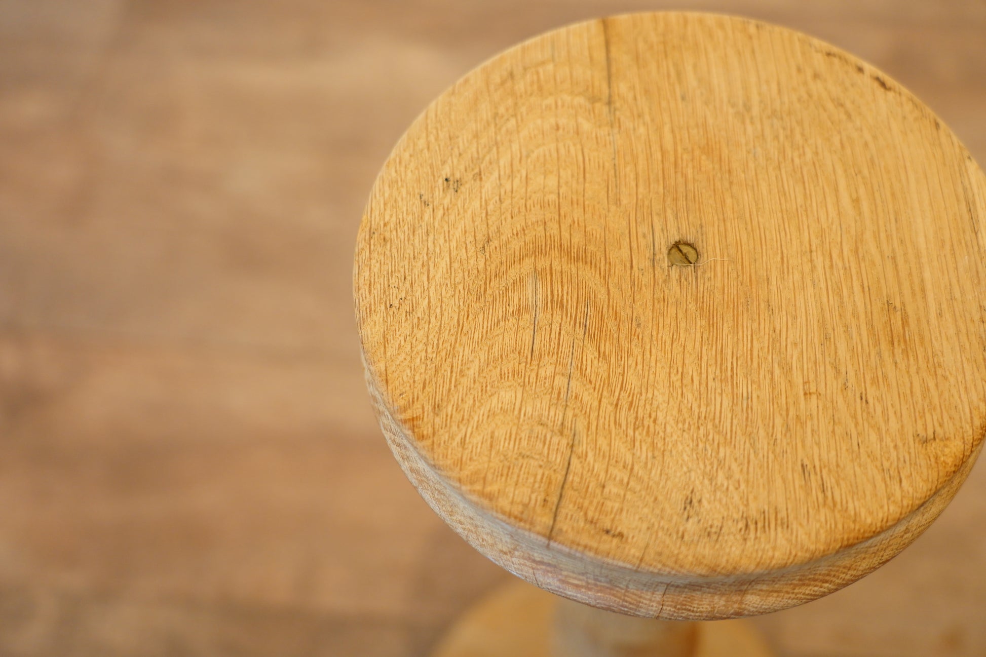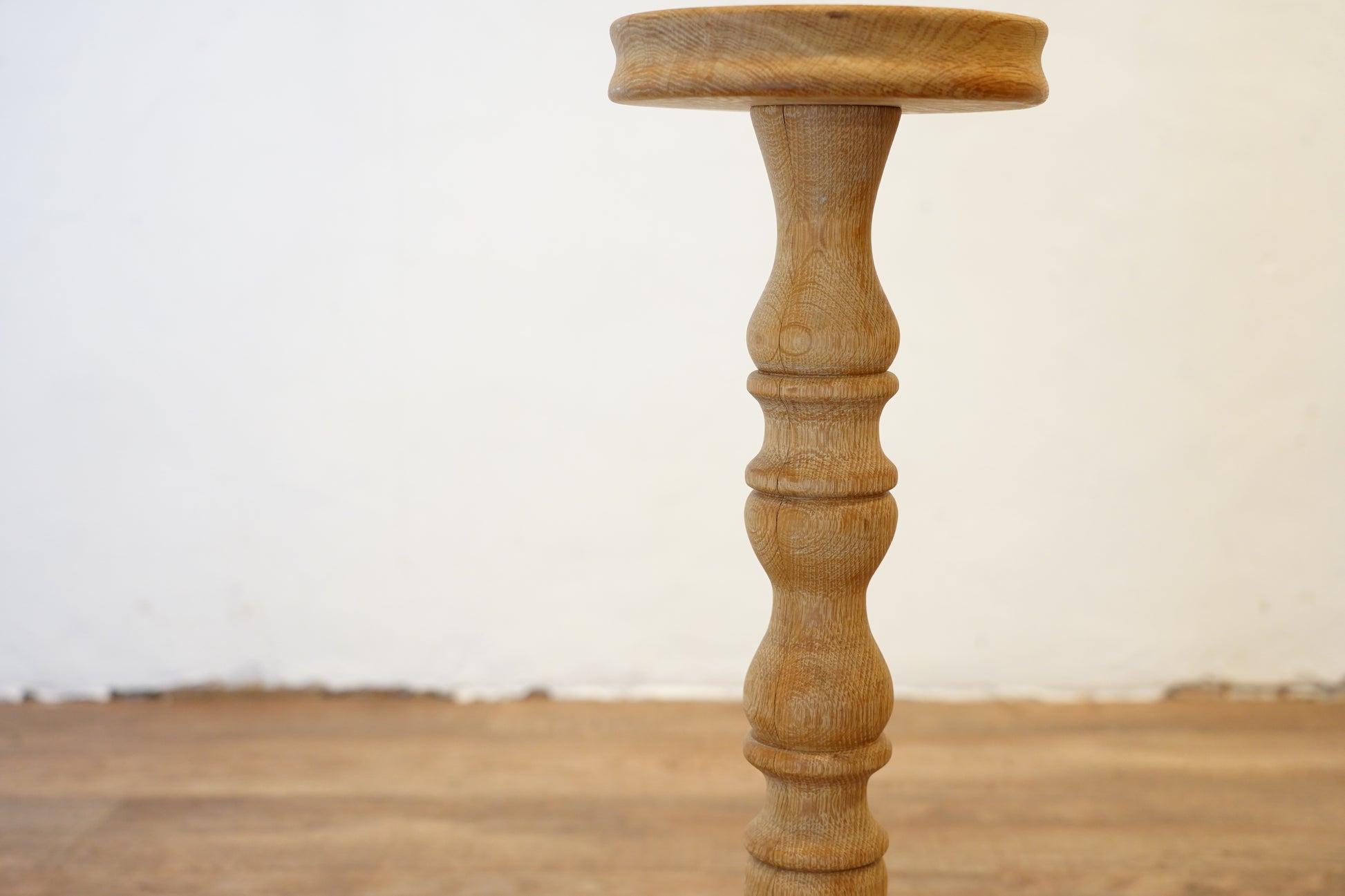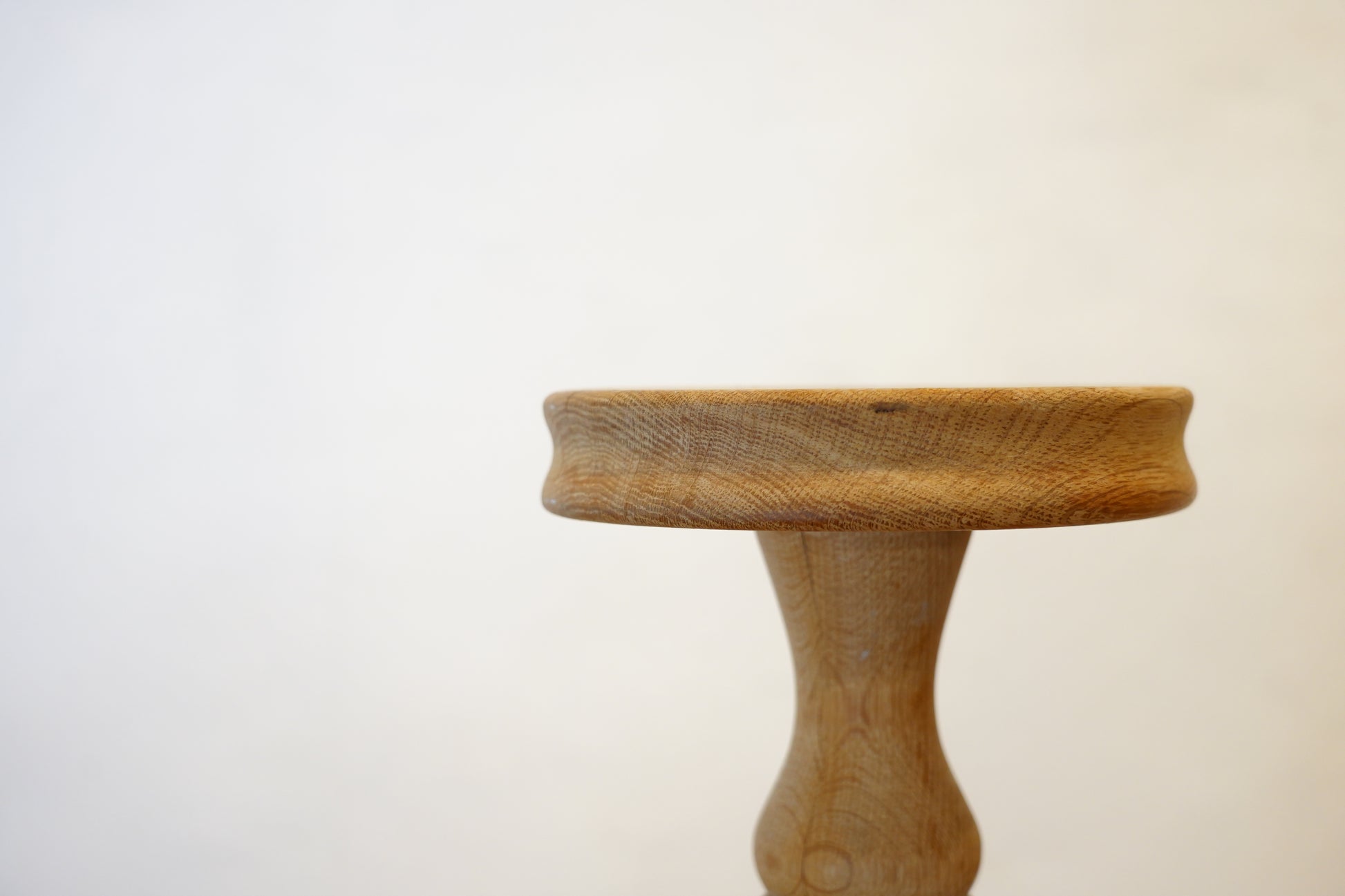 ろくろの脚と厚みのある丸い天板が愛らしい、花台です。