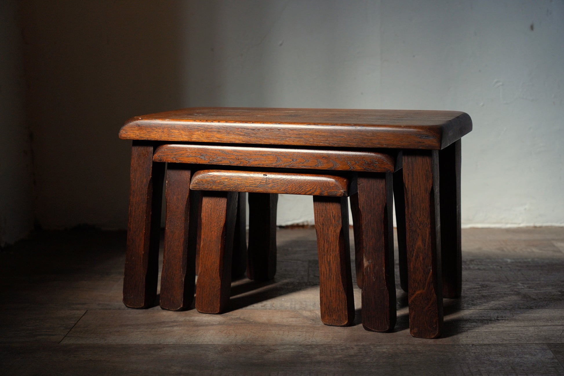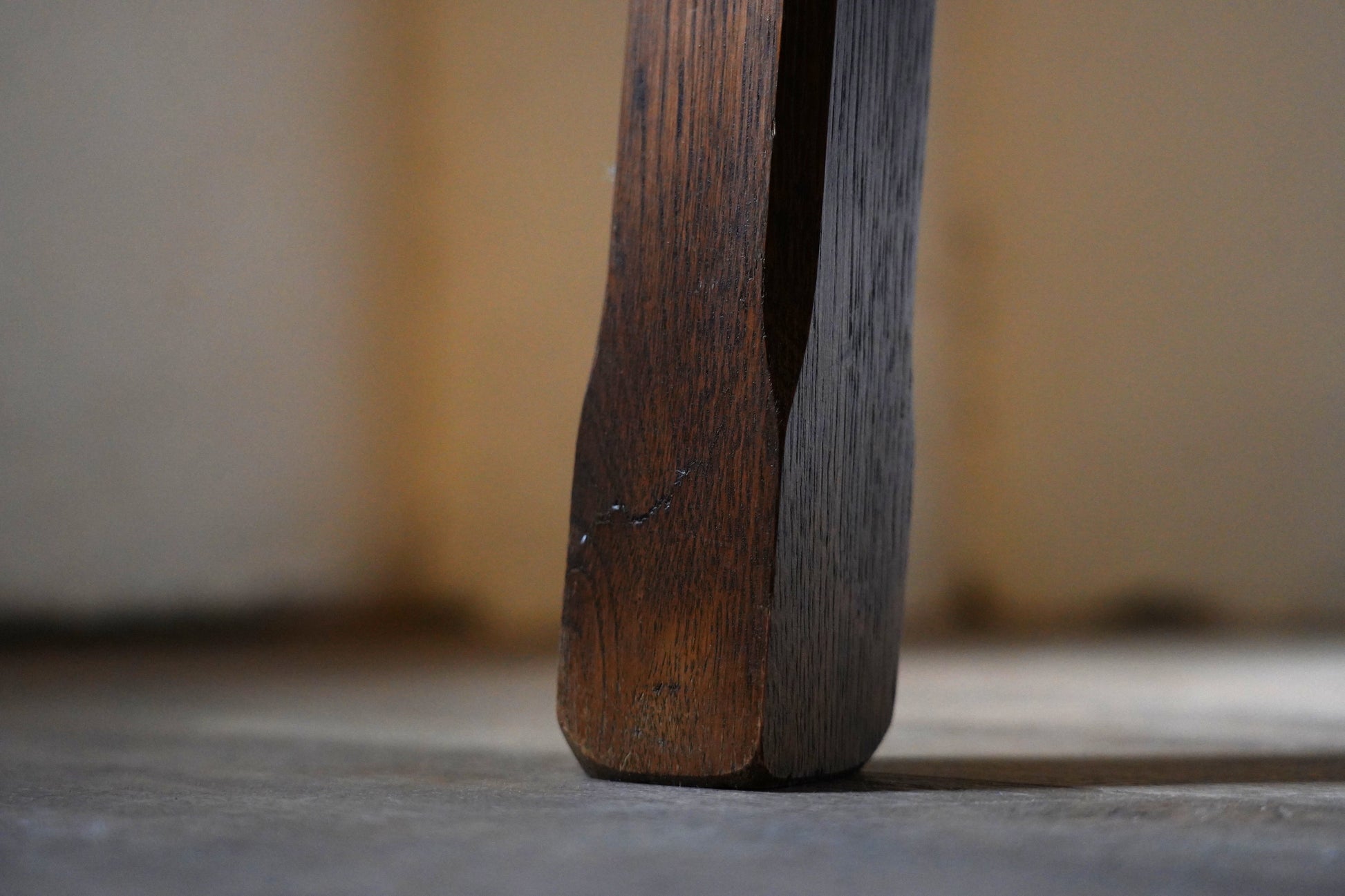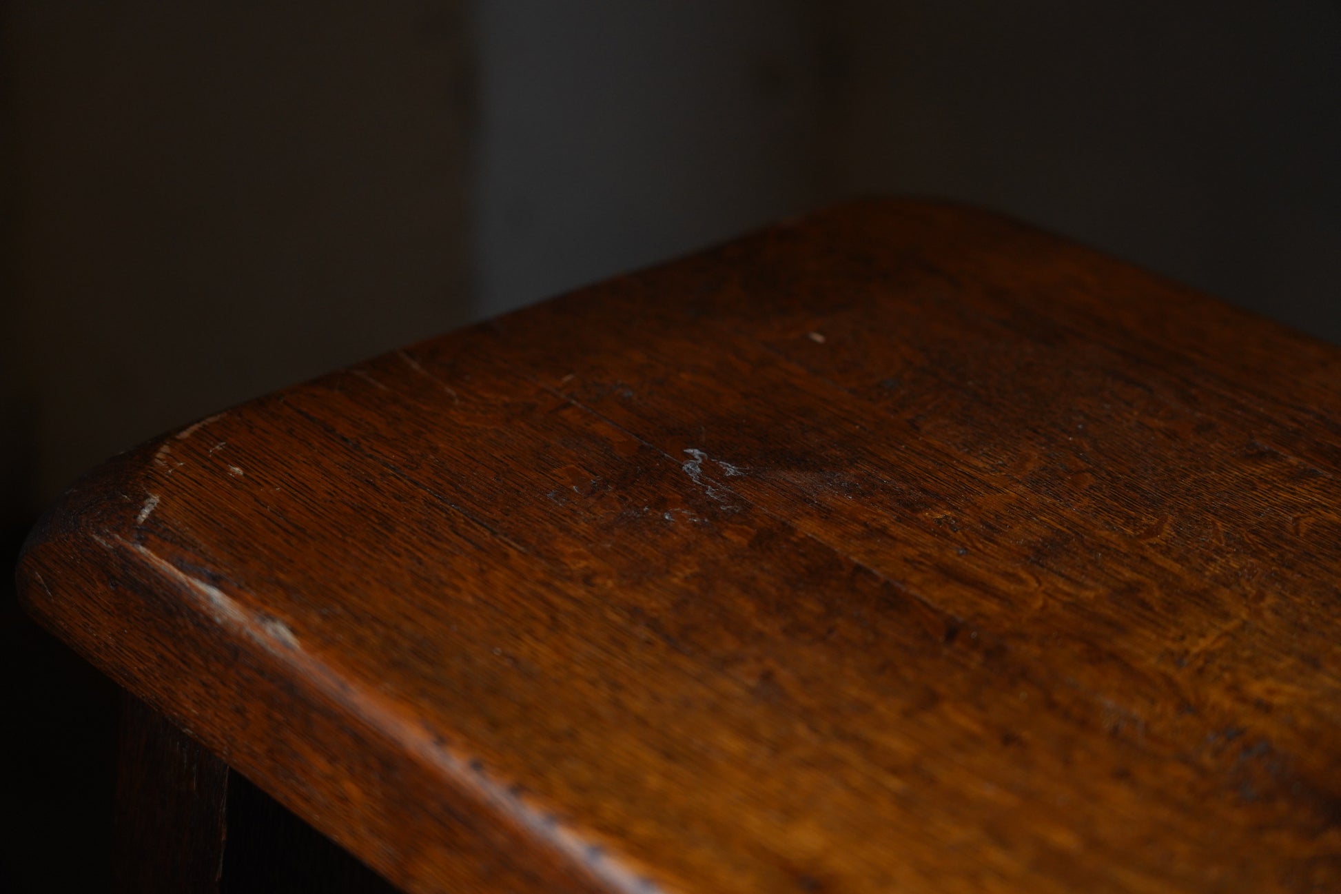 ダークなブラウンカラーの塗りがクラシカルで、サイズがコンパクトなのでミニテーブルにもスツールにもなるお品です。